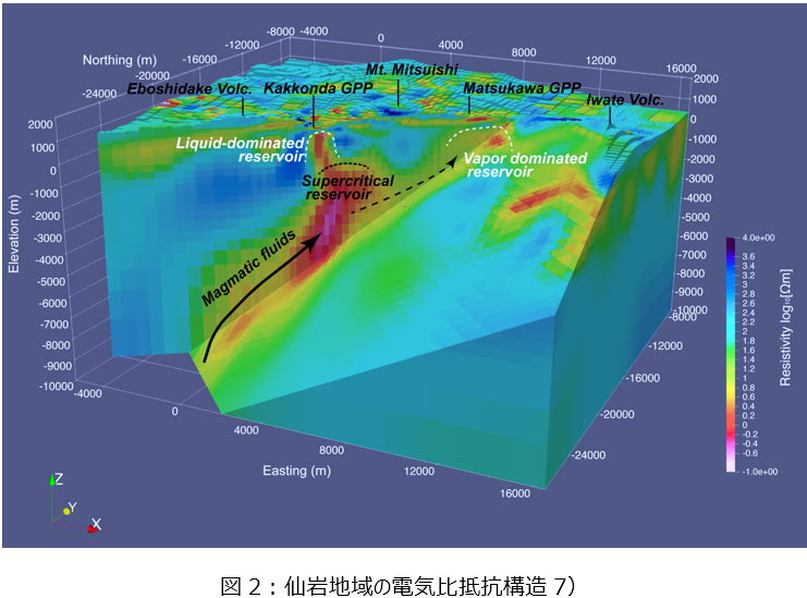 7) Yamaya, Y., et al. (2022) 3-D resistivity imaging of the supercritical geothermal system in the Sengan geothermal region, NE Japan, Geothermics, 103, 102412.